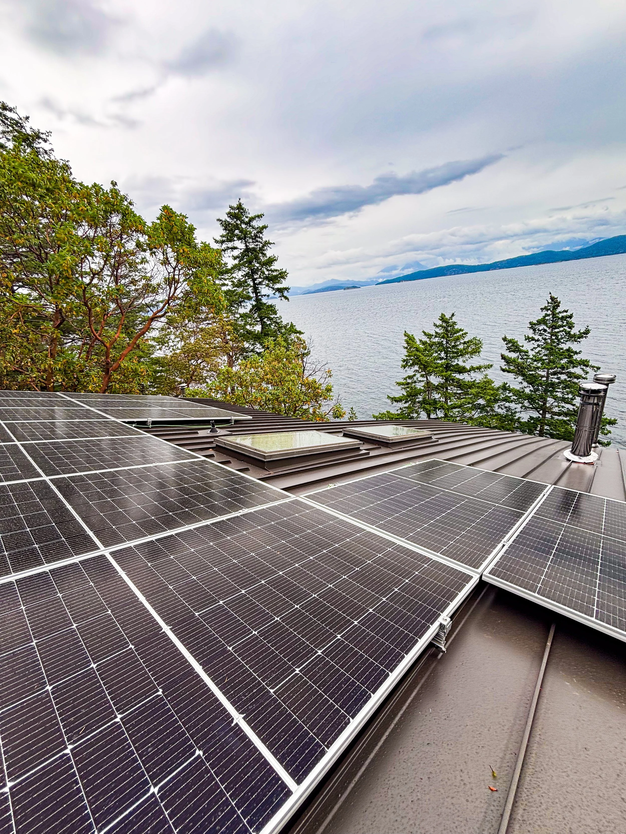 Residential solar install on Hernando Island, British Columbia.